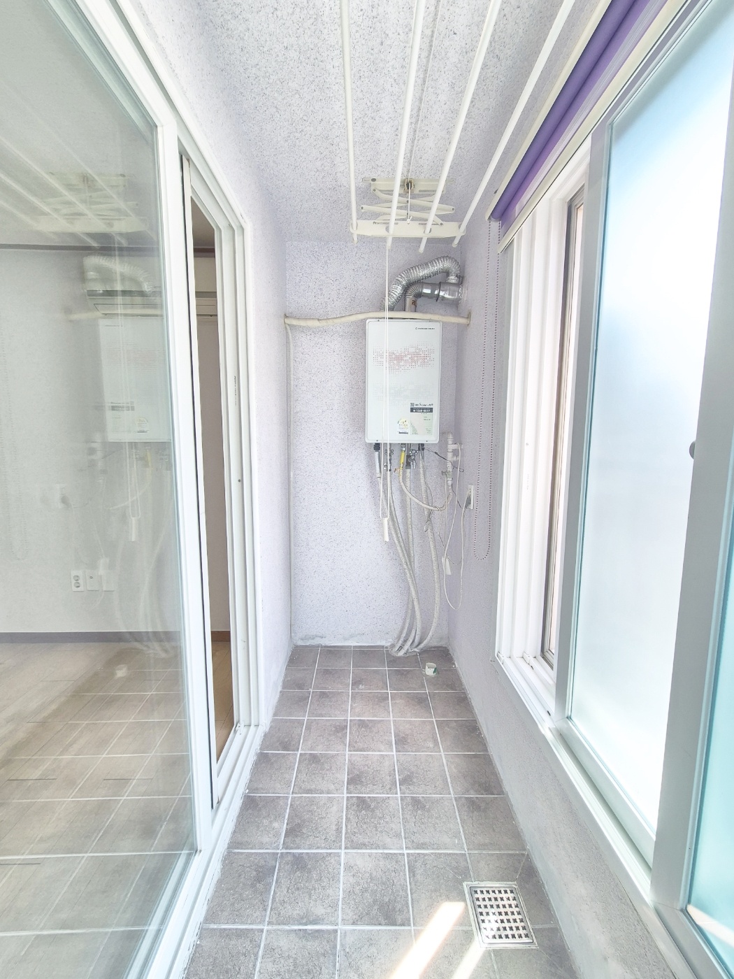 ◑ 베란다 넓고 수납장이 있어요